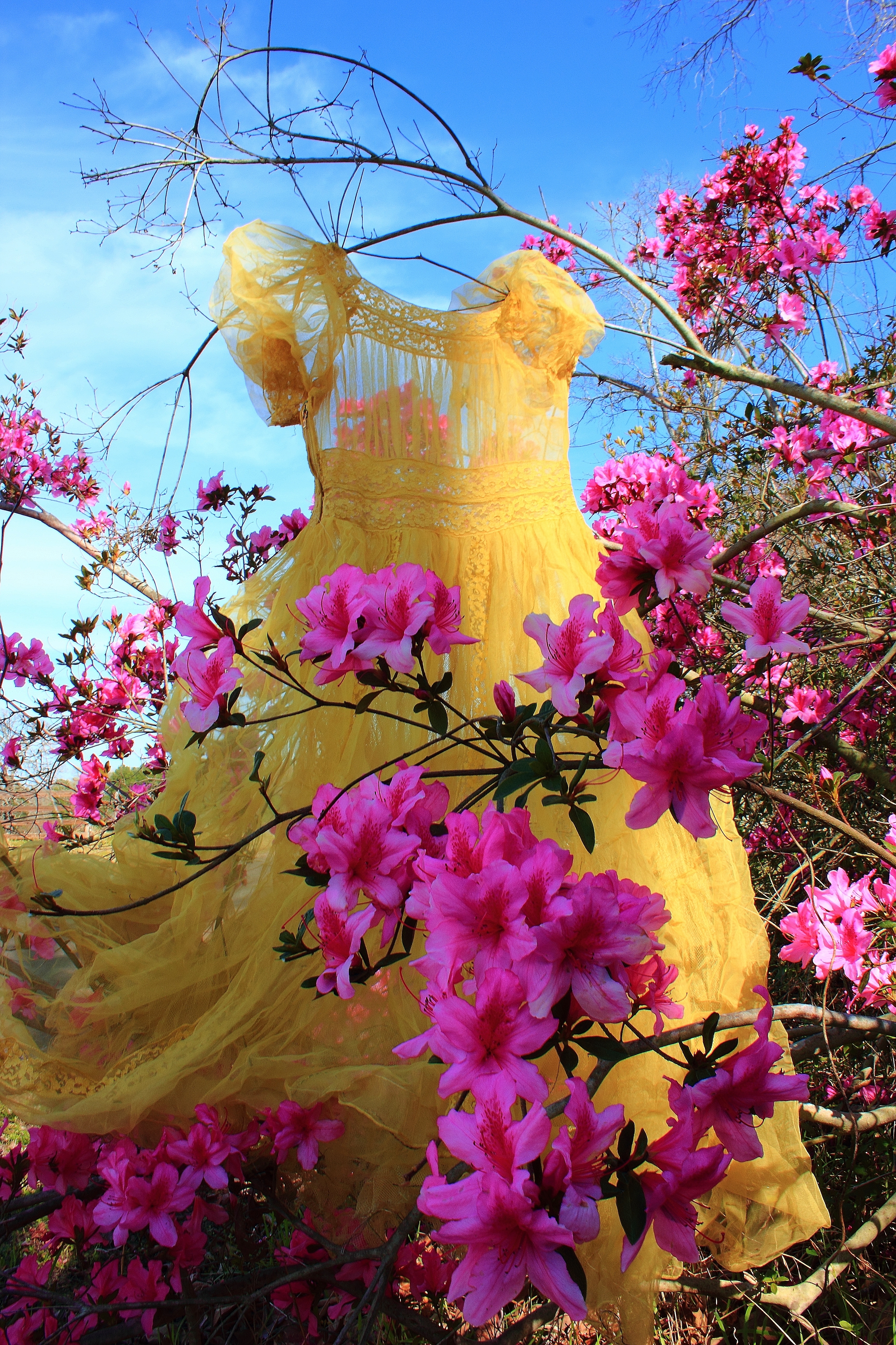 I haven’t posted in a while–life got in the way of photography, but today I just couldn’t resist the call of the East Texas sky. I got out my faithful Chevy, gassed her up, and wandered around Walker and Trinity Counties. When I came across this azalea bush on the side of the road, I almost swooned from the lusciousness of the bright fuchsia pink against the cobalt blue of the sky, and when I added Beatrice’s yellow dress, well the only word that buzzed around my brain was happy, happy, happy. This photo makes me happy. The colors make me happy. Spring makes me happy. Knowing that summer is just around the corner and I won’t have to teach for a bit and can spend my days meandering down these East Texas back roads looking for more photographic adventures makes me ecstatically happy. I hope this photo makes anyone reading this post happy as well. Smiles all around!
